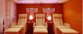 足療店需要輕裝修,重裝飾,讓足療店常換新,盡量在裝修不做太大改動的情況下,通常我們用紗藝、景觀、布藝、飾品等手法來改變足療店的氛圍,營造溫馨、休閑的氛圍。